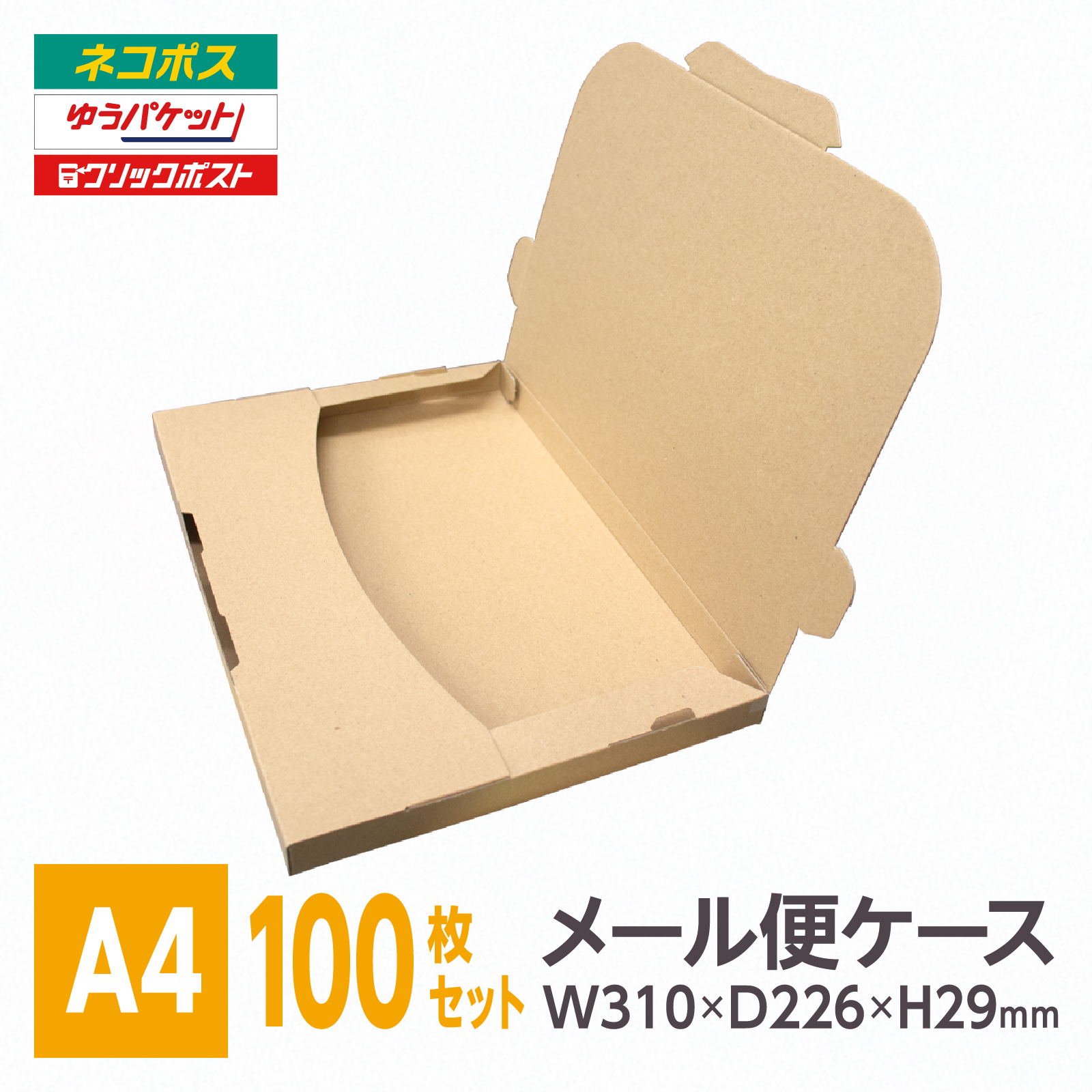 ネコポス3cm対応 最大サイズ(A4) メルカリ 薄型ダンボール 差込式メール便ケース 100枚 箱 paypayフリマ ヤフオク
