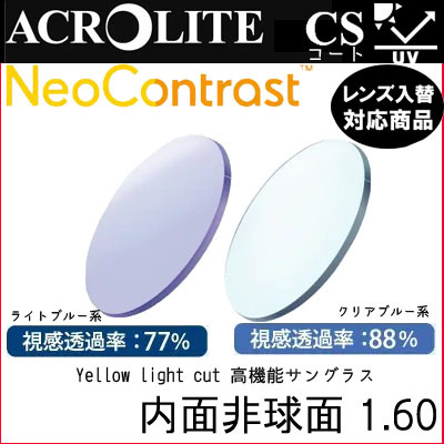 ネオコントラスト 160 度付き ハイコントラストレンズ アクロライト メガネ レンズ交換 高性能サングラスレンズ UVカット付(2枚)