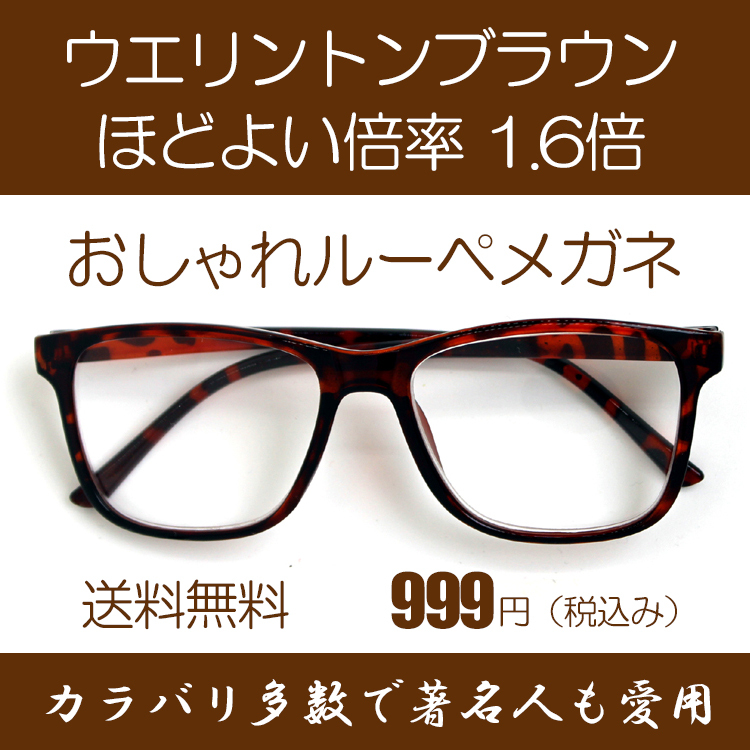 ルーペ メガネ 著名人 博士 学者も愛用 両手が使える おしゃれな 拡大鏡 小顔に見えるウエリントンフレーム(ライトブラウン) 倍率1.6倍 おしゃれケース付き