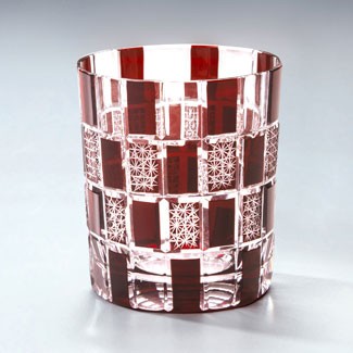 手づくり切子 ロックグラス 刺子市松 レッド 約300ml AS10-RD マイグラス タンブラー オールドファッション 焼酎 切子グラス 御祝 ギフト プレゼント