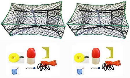 2-Pack of KUFA Galvanized foldable Crab Trap & accessory kit (100' Poly Rope with line weight,Clipper,Harness,Bait Bag & 11" Float) (S33+CAP1) x2