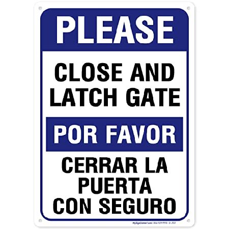 Please Close and Latch Gate Sign, Bilingual English and Spanish, 10x14 Inches, Rust Free .040 Aluminum, Fade Resistant, Made in USA by My Sign Center