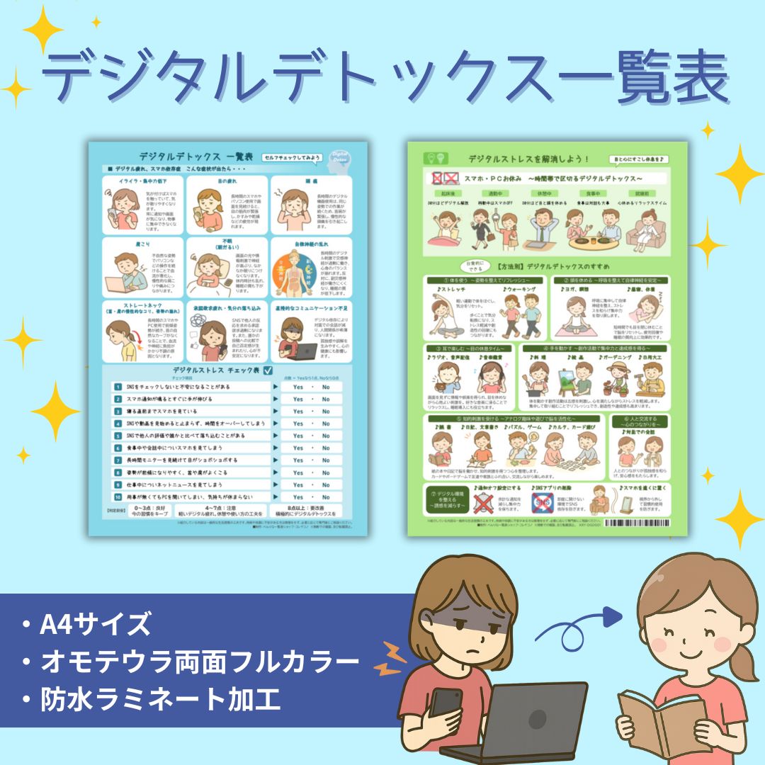 デジタルデトックス一覧表 A4サイズ・防水ラミネート加工 デジタル・SNS疲れの回復に プレゼントに