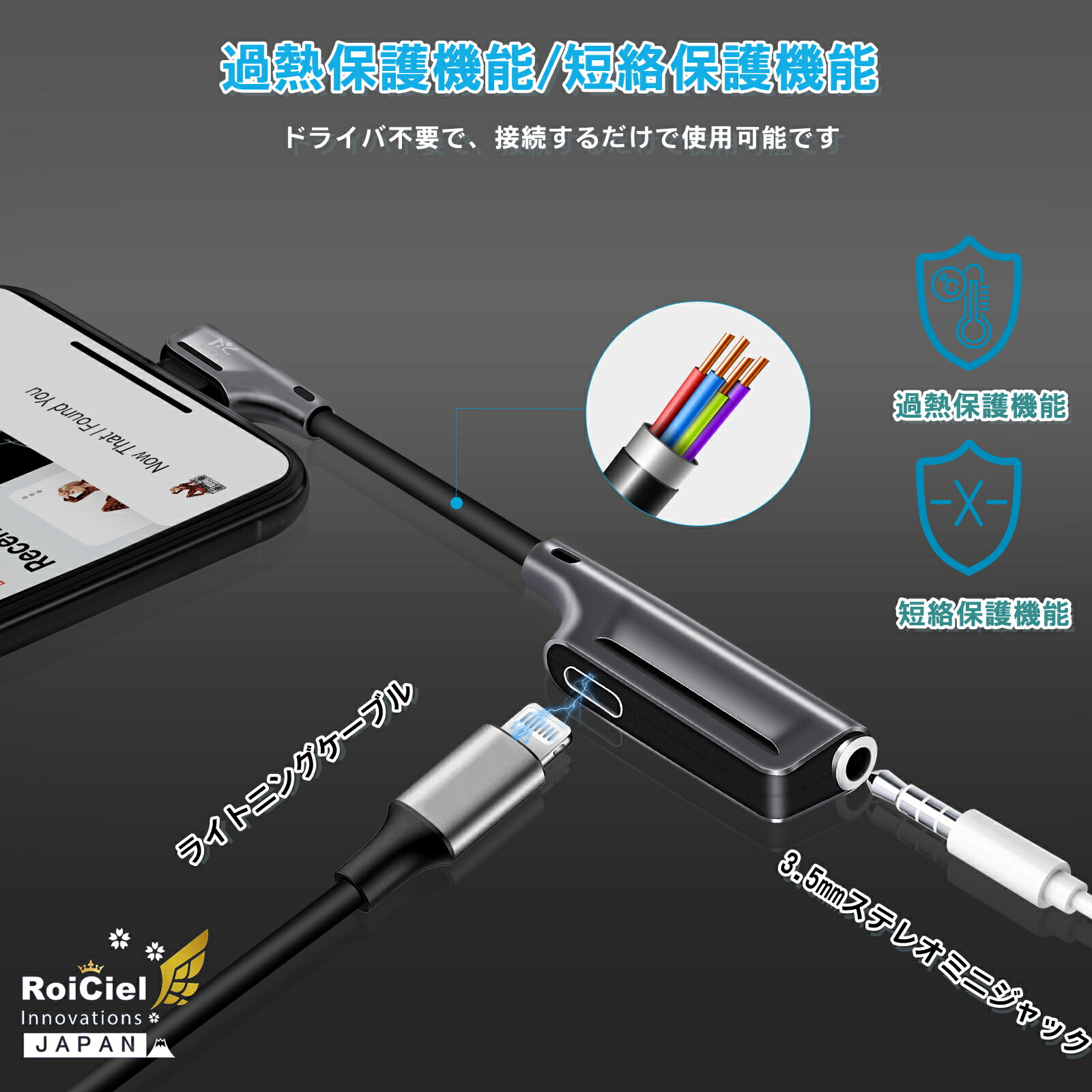 | アダプタ内部にデジタルオーディオデコーダチップを搭載するので、高いパフォーマンスを備えて、より良いスピードとクリアな音質を実現しました。急速充電の同時に、バッテリーへの損害がなし且つ電流音を出なくて、ご安定に安全使用可能です。【充電しながらイヤホン】:本ライトニングイヤホン変換アダプタを経由し、オーディオケーブル(ライトニングオーディオジャック)とライトニング端子搭載のiPhoneやタブレットを接続し、音声通話・音楽鑑賞・音量調節を対応します。ライトニングケーブルと充電器やパソコンを接続し、最大5V/2.4Aの大電流で接続デバイスへの高速充電を対応します。 |