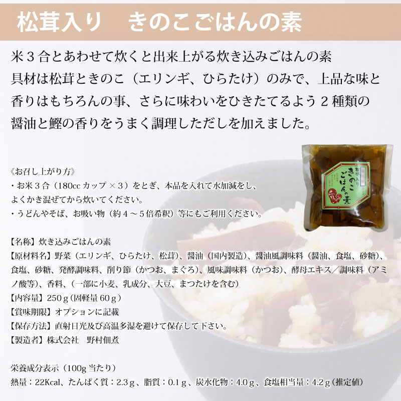 京都 野村佃煮 松茸入り きのこごはんの素 250g(3合用)×2袋【メール便送料無料】
