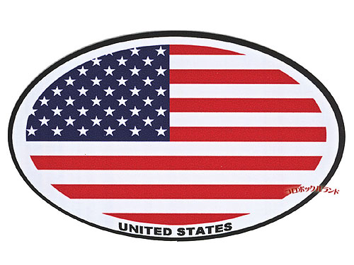 USフラッグをモチーフにしたオーバル型のPVCステッカーです。(新品)