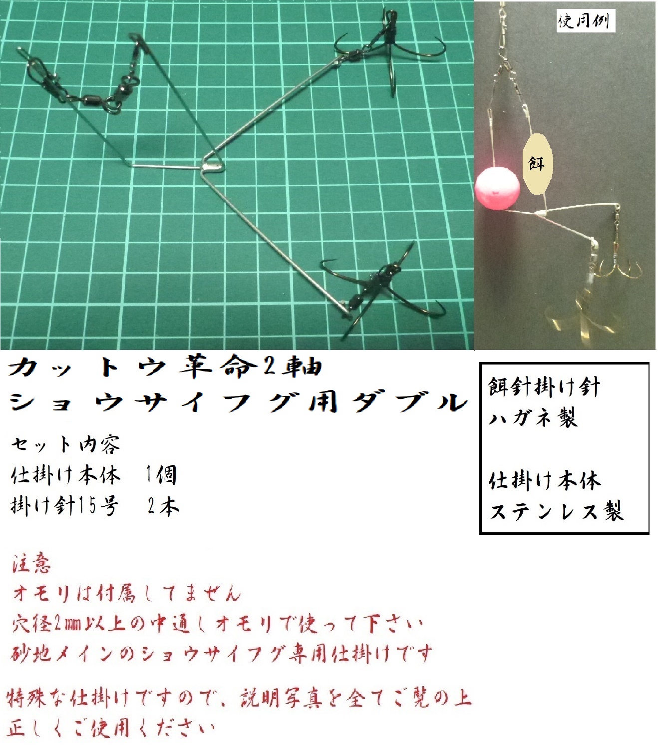 カットウ革命2軸 ショウサイフグ用ダブル (15号掛け針2本付き)