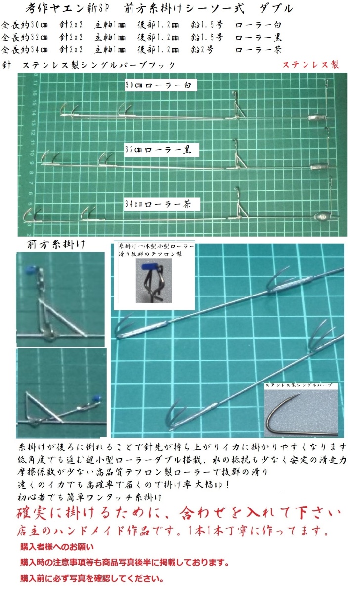 ローラー付きヤエン 考作ヤエンスペシャル 前方糸掛けシーソー式 新SP ダブル 30cm 32cm 34cm