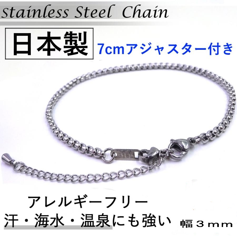 日本製 アンクレット ベネチアン チェーン サージカルステンレス アレルギー対応 幅 3mm アジャスター付き