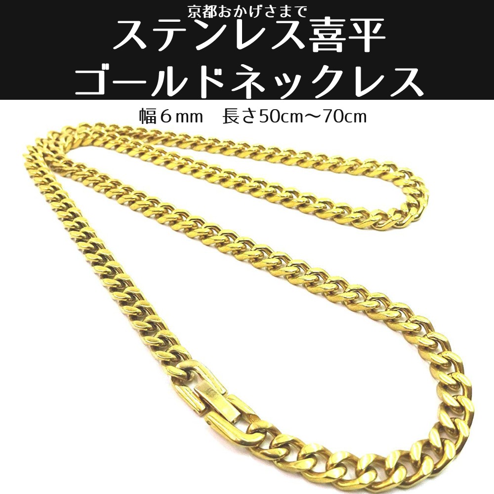 ステンレス 喜平 ネックレス ゴールド 鏡面仕上げ 4面カット 中折れタイプ 幅 アレルギーフリー 金 6mm 長さ 50cm 55cm 60cm 65cm 70cm