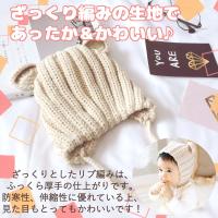 大切な赤ちゃんを寒さや不意の転倒からばっちり守る、とってもかわいいクマ耳モチーフの赤ちゃん用ニット帽子です!