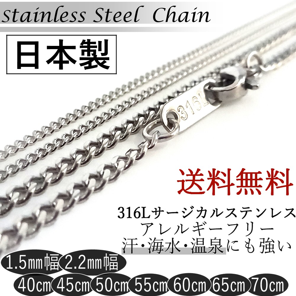 日本製 ネックレス 喜平 チェーン サージカルステンレス 316L アレルギー対応 幅 1.5mm 2.2mm