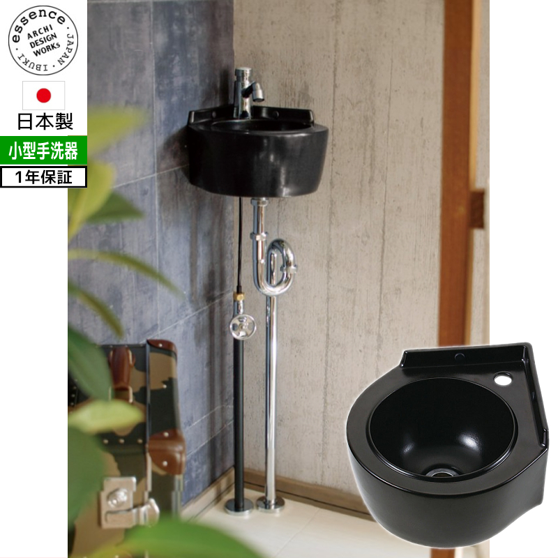(商品イメージ)壁掛け トイレ 手洗器 壁付け 手洗い器 おしゃれ 手洗い鉢 小型 洗面ボウル エッセンス 手洗器セット ブラック 黒