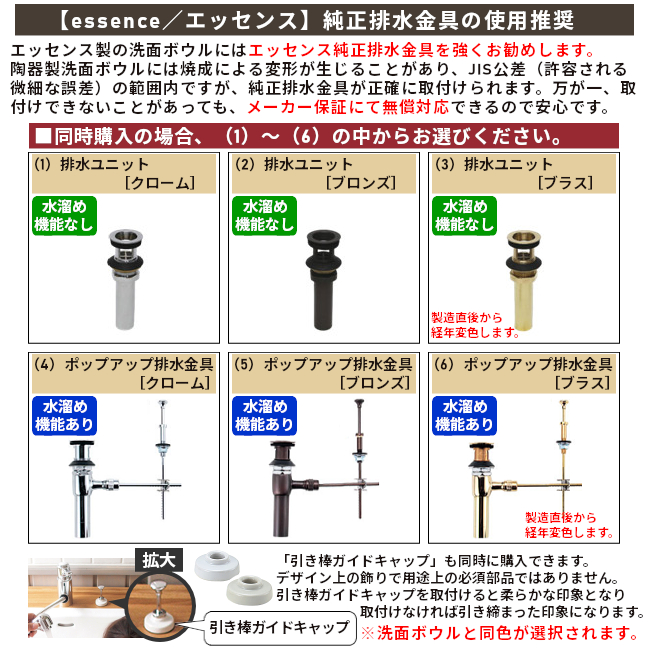 エッセンス洗面ボウルにはエッセンス排水金具を推奨します。