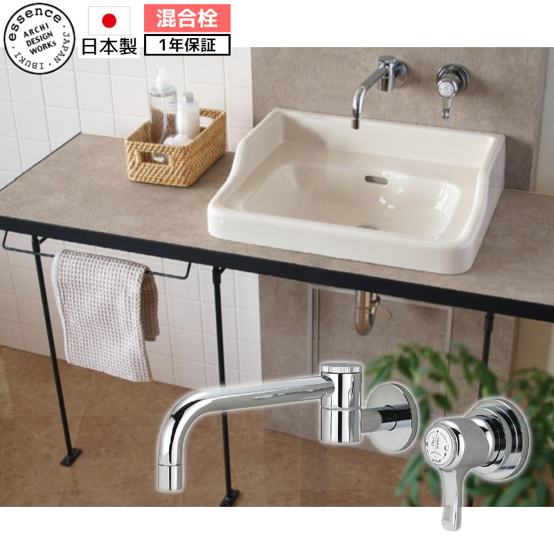 エッセンスの壁出混合水栓。洗面所の混合栓の交換や新築・リフォームでおしゃれな手洗いにしましょう!