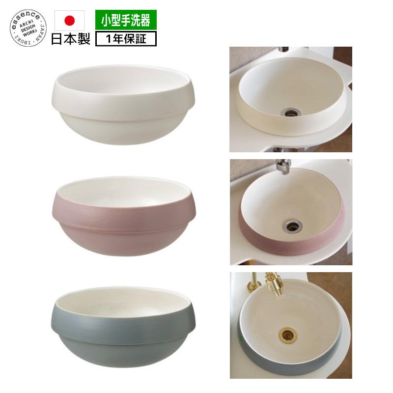 エッセンスのハンドメイド手洗い器です。無機質になりがちな洗面ボウル空間ですが、手作りの温かみがありトイレの手洗いが一味風合いが増します。