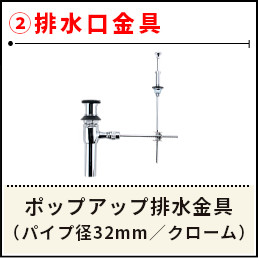 ●排水口金具:ポップアップ排水金具(パイプ径32mm/クローム)