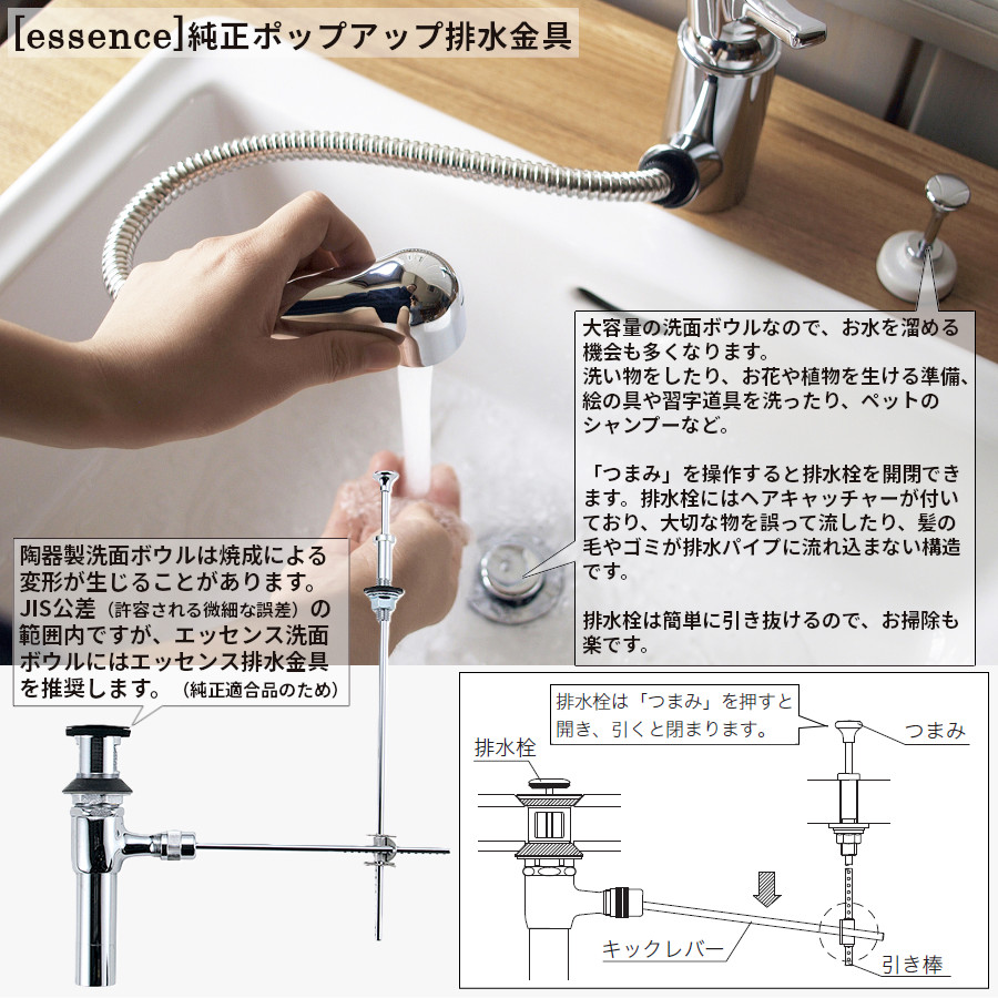エッセンス洗面ボウルにはエッセンス排水金具を推奨します。