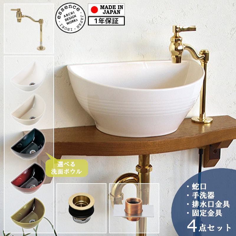| 商品名 | 立豆栓(ブラス)&クレセント手洗器 &丸鉢排水金具(25/ブラス)&置型手洗器用固定金具 4点セット |