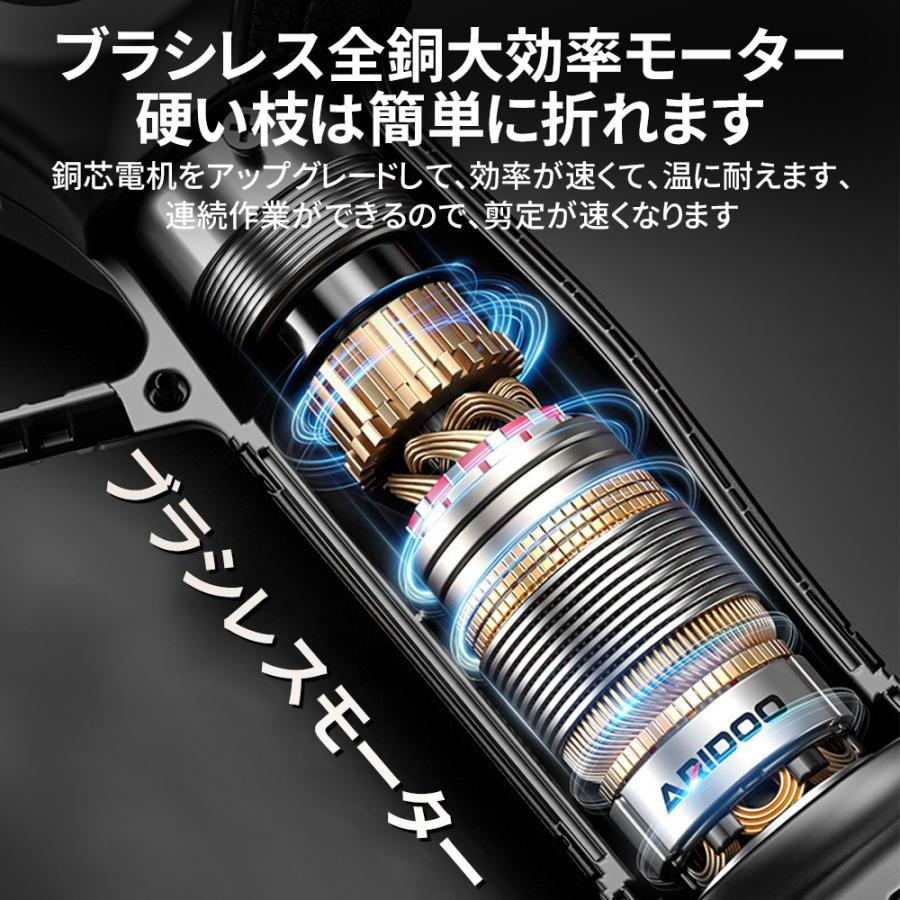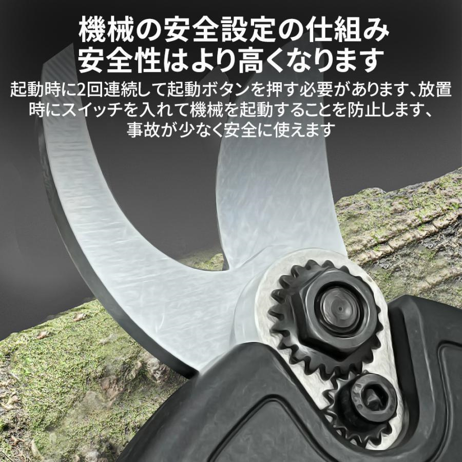 電動剪定ハサミはブラシレスモーター付きの新型電動ハサミ です。安定した性能、高速回転、優れ耐久性と長寿命の特性がります。直径10 20 30 50mmまでの切断が可能です。スーパーパワーで、太さ50mmの枝も1秒で切断できます。コードレス充電式剪定ハサミ、電源が不要であり、様々な場所で使用することができ、場所の心配がありません。