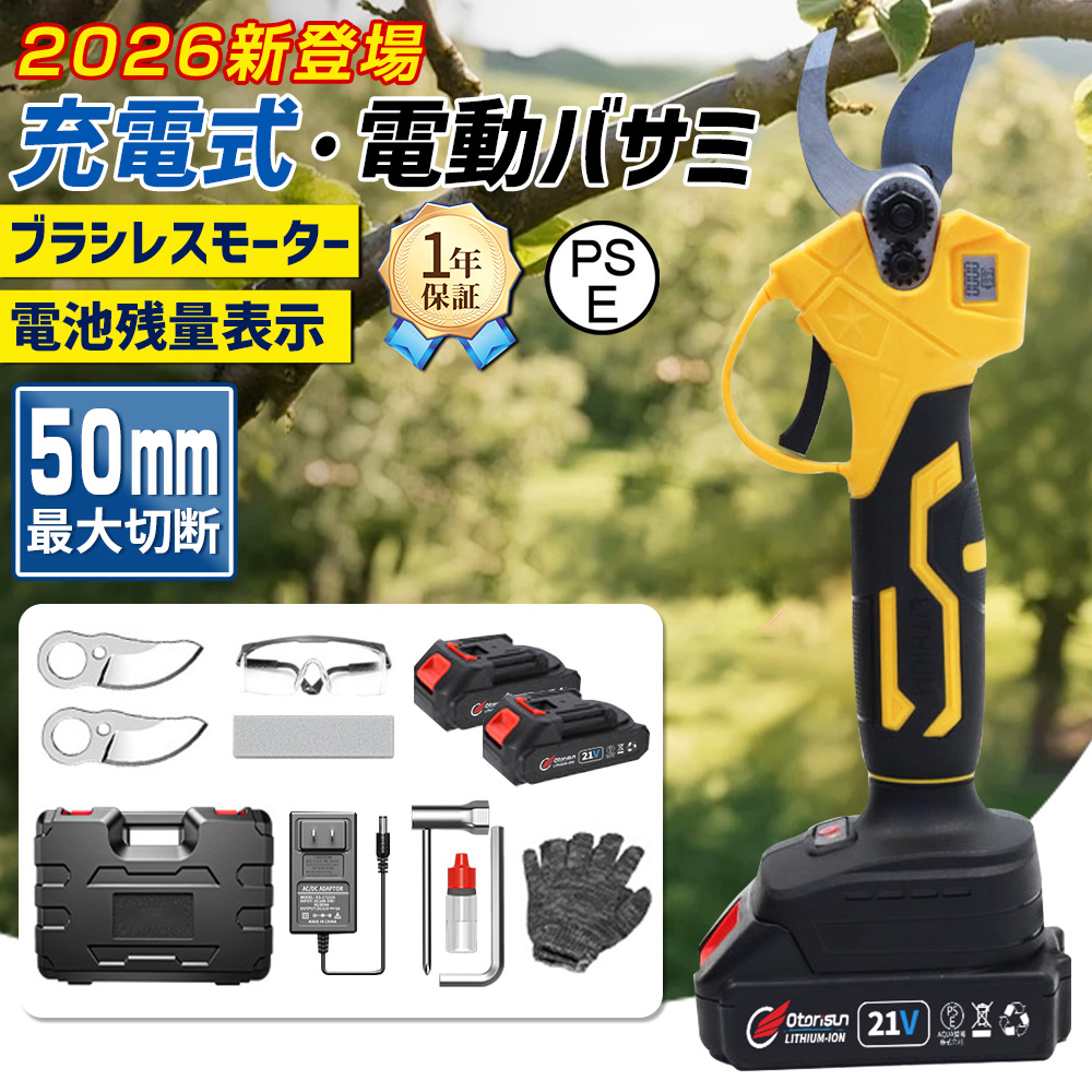 ハイパワーブラシレス永久磁石モーター搭載し、超強動力を提供し、50MMの生木を0.5秒に瞬時切断、一日に600本の果樹を剪定できます。