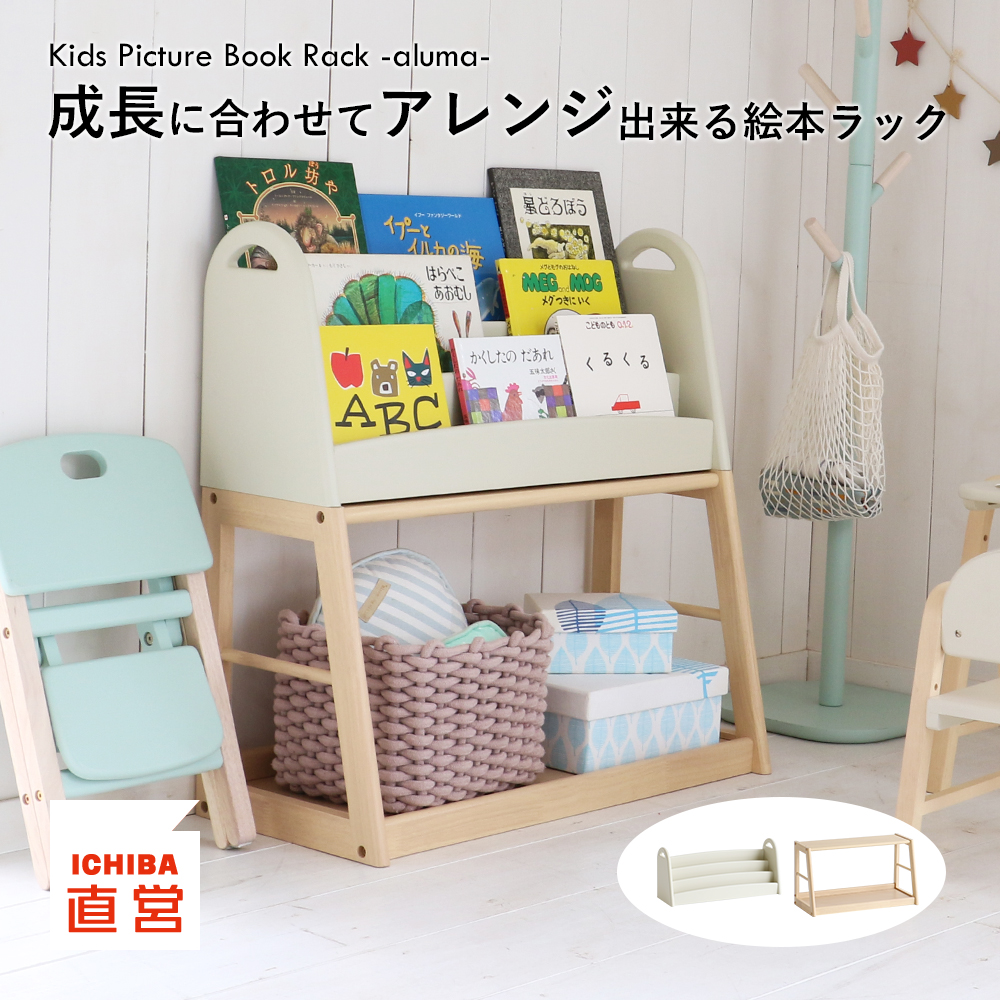 上段は、カラフルな絵本の色が映えるアイボリー。