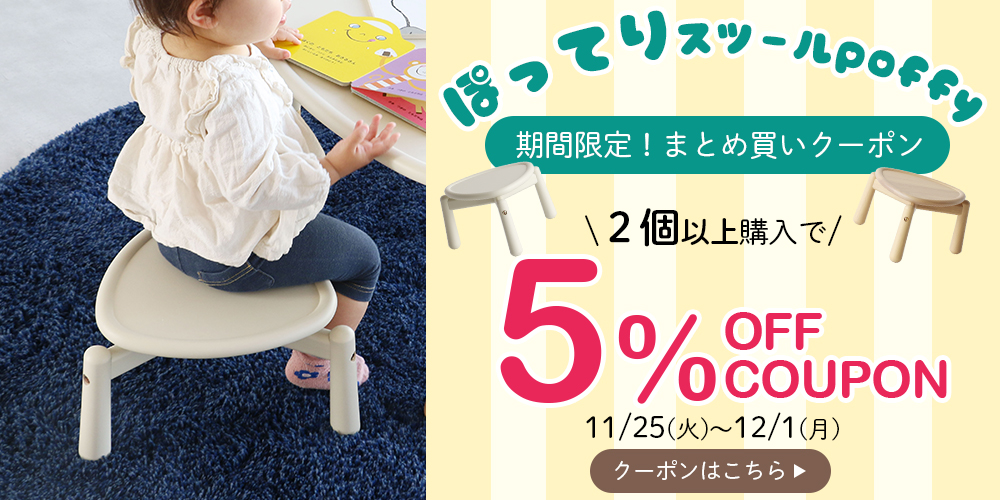 お子さまの“自分の席”として、そっと寄り添ってくれるスツール「poffy(ポッフィ)」です。