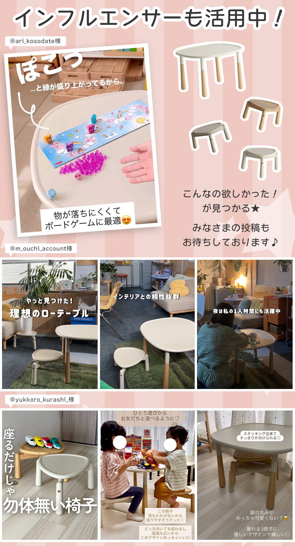 絵を描いたり、おやつを食べたり、毎日の小さな 「できた!」をそっと見守ってくれるテーブルです。