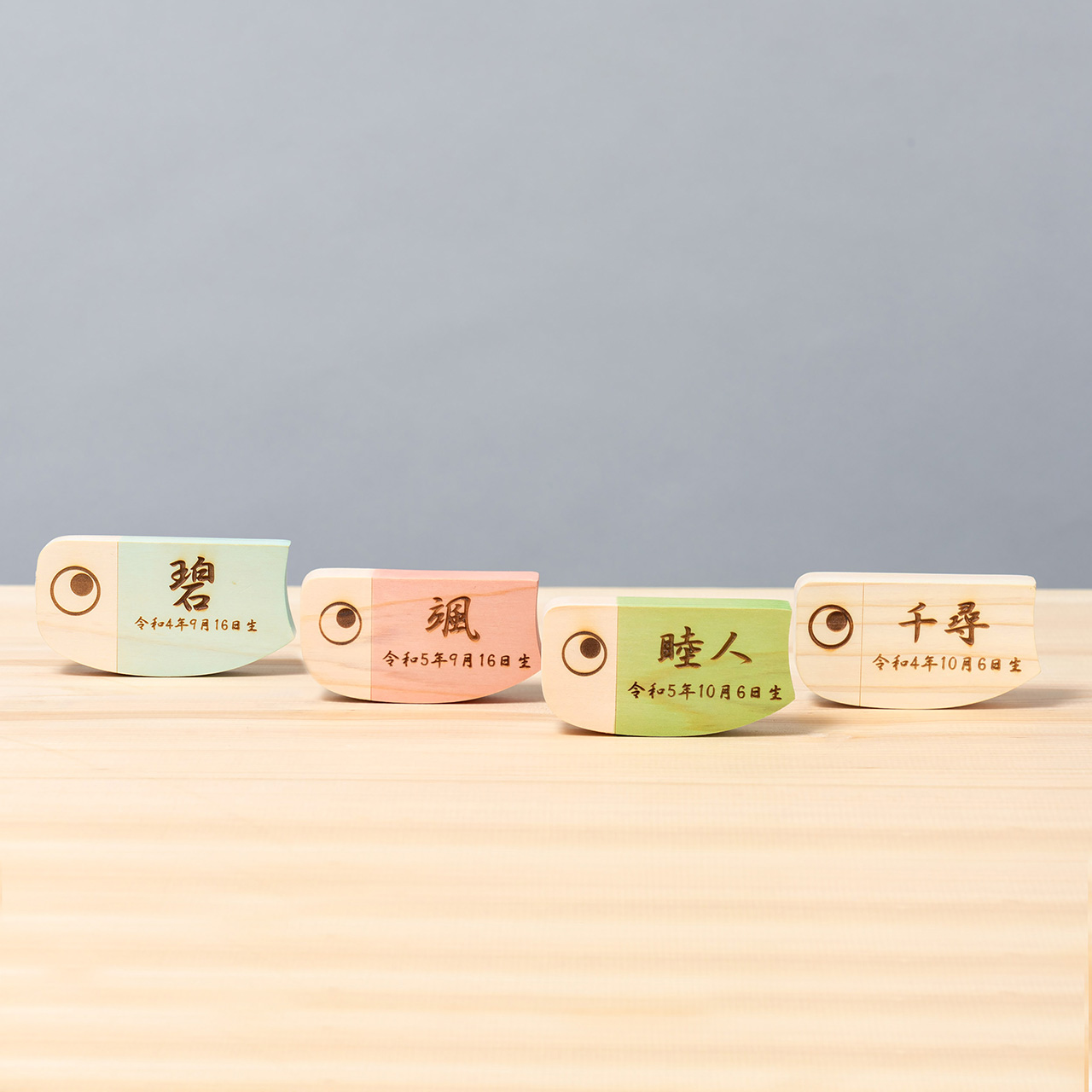 ことのオリジナル雑貨 名前札 鯉(0930-F) 木製 コンパクトな節句人形 鯉のぼり こいのぼり 五月人形 兜 かわいい 天然木 手作り