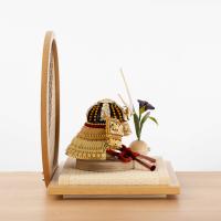 精巧な戦国兜の凛として強く美しい佇まいを天然木の優しいぬくもりが包み込む・・・