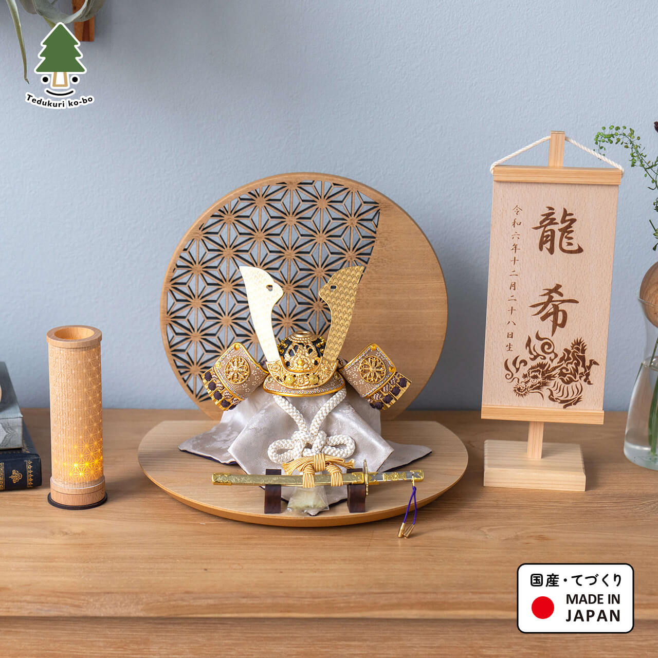 五月人形 コンパクト おしゃれ 兜 かわいい シンプル てづくり 木製 国産 天然木 モダン 5月人形 平飾り ことの兜 5RYO-0713