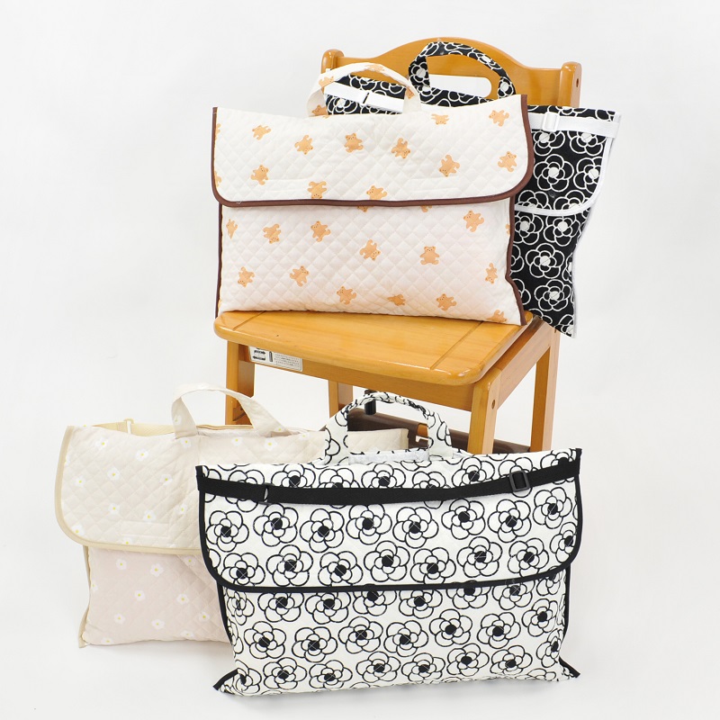 表全面同じプリント柄 #持ち手 共紐 #内側に学童ネーム付き #ショルダーひも(アジャスター付 #キルティングの防災頭巾カバー