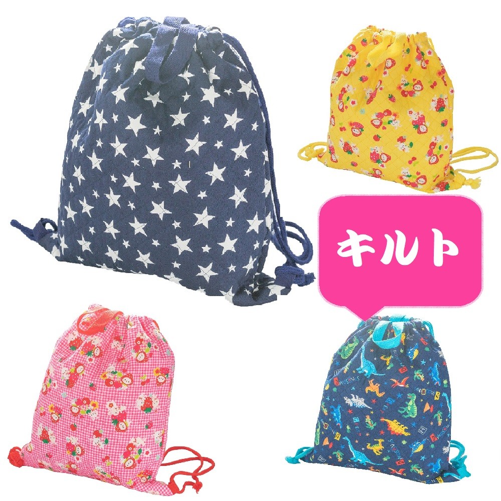 恐竜 イチゴ イエロー ナップサック キルト 体操着 入れ 巾着 袋 2way 幼稚園 通園グッズ 小学校 入学準備 子供用バッグ リュック ジュニア キッズ