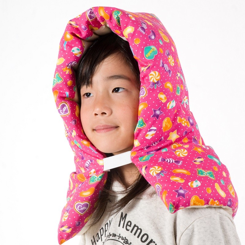 防災ずきん 国産 綿100% 可愛い キャンデー レッド 保育園 幼稚園 小学校低学年程度迄におすすめです 安心サイズのキッズ防災ずきん