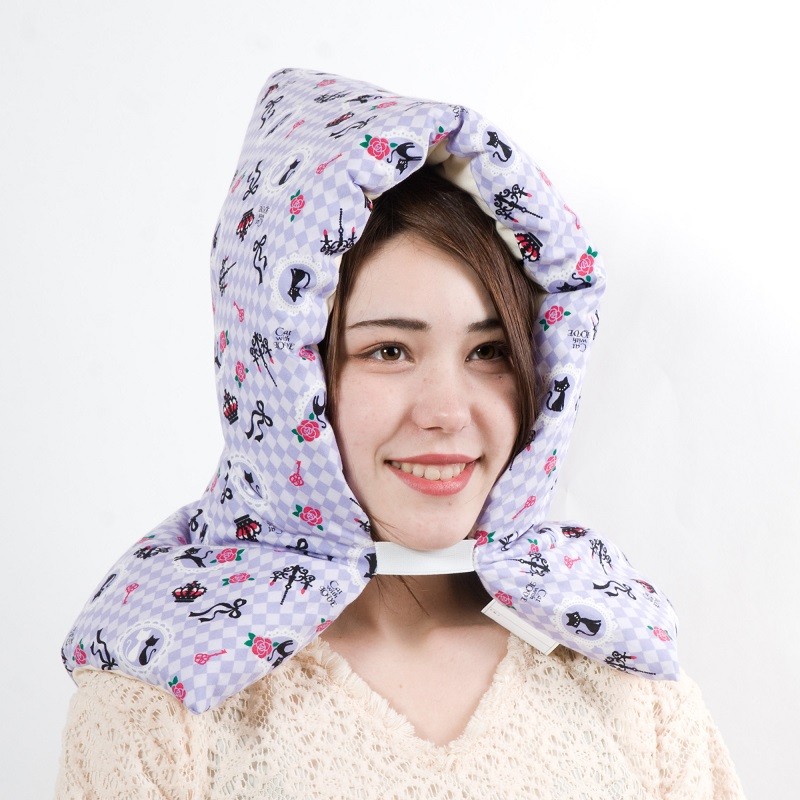 防災ずきん 新しい綿を使用したこだわりの 綿100% 防災頭巾可愛い ネコ パープル 日本製 小学生〜大人用防災ずきん 低学年から高学年 日本製