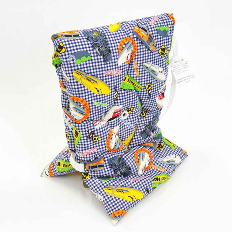 防災ずきん 新幹線ギンガム 国産綿 100% 子ども用 防災頭巾 保育園・幼稚園〜小学校低学年程度迄におすすめです 安心サイズのキッズ防災ずきん