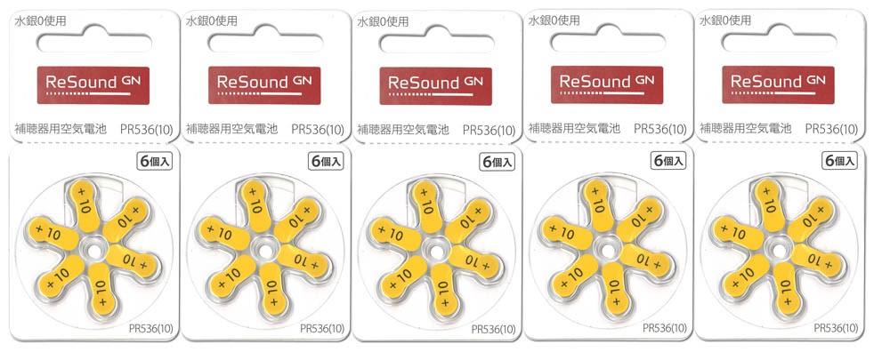 ReSound リサウンド 補聴器用空気電池 PR536(10) 5パックセット (30粒) 送料無料 同型番の補聴器電池各社に対応 平日14時迄に決済完了で当日発送(休業日除く)