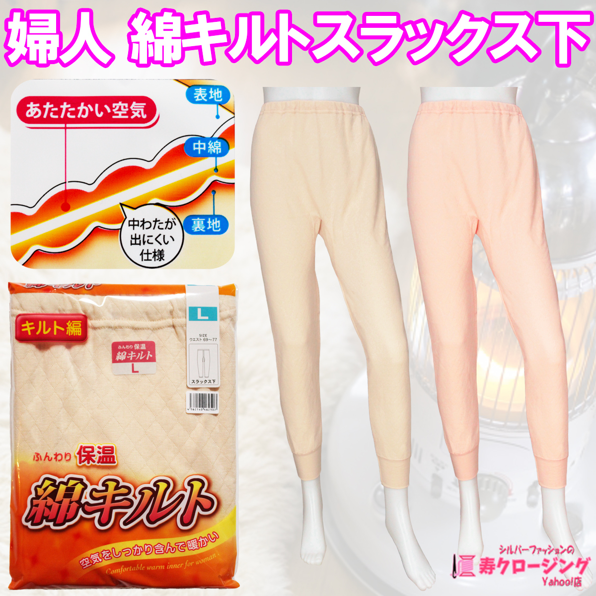 婦人のあたたかキルトスラックス下肌着です。