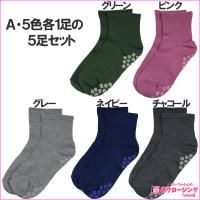 5足セット 婦人 すべり止め 付き 無地 綿混 靴下 やわらか 口ゴム あいもの 転倒 予防 防止 介護 高齢者 クリックポスト