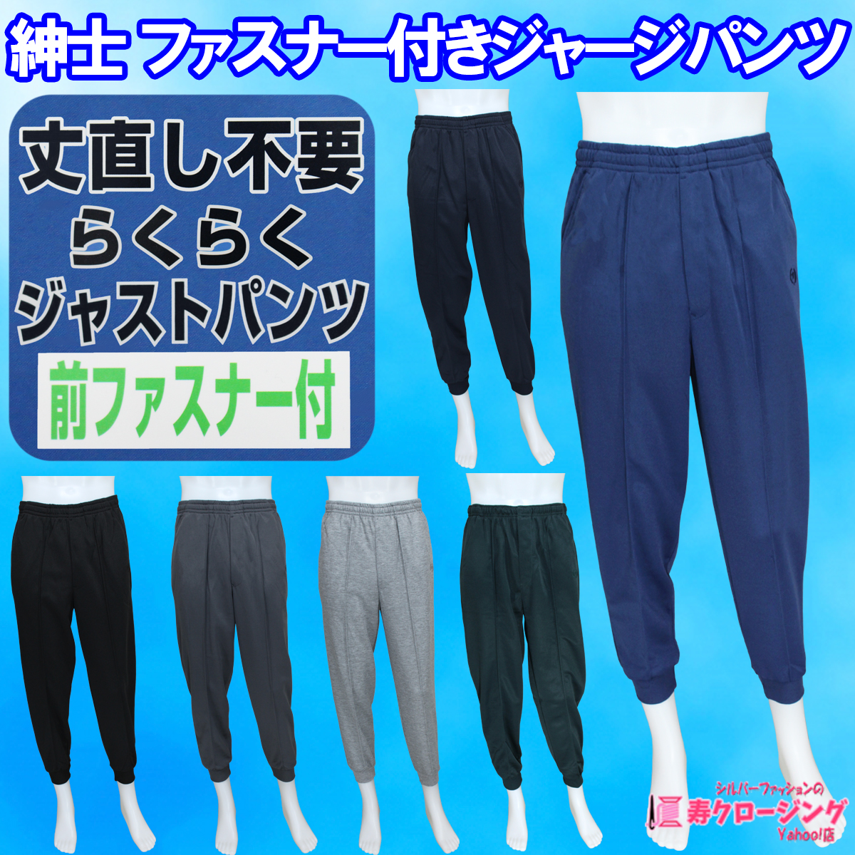 紳士 ファスナー付きジャージ パンツ 前ファスナー 丈直し不要 ウエスト ゴム 紐 すそ 絞り ズボン 春夏秋 シニア