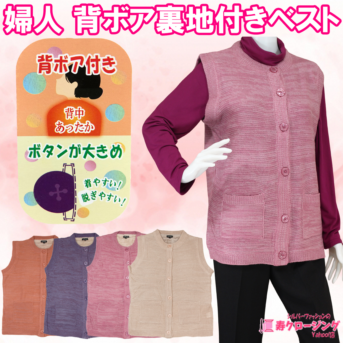 婦人の背ボア裏地付きニットベストです。
