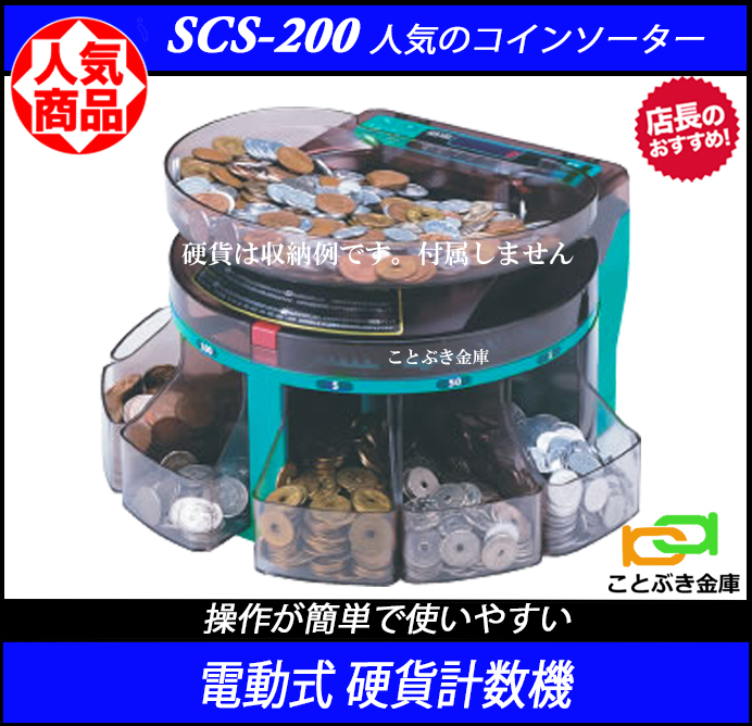 SCS-200 電動コインカウンター 硬貨計数選別機 電動式硬貨選別機 コインソーター 大量コインを仕分けしカウント 簡単操作で使いやすい 低価格でお買得
