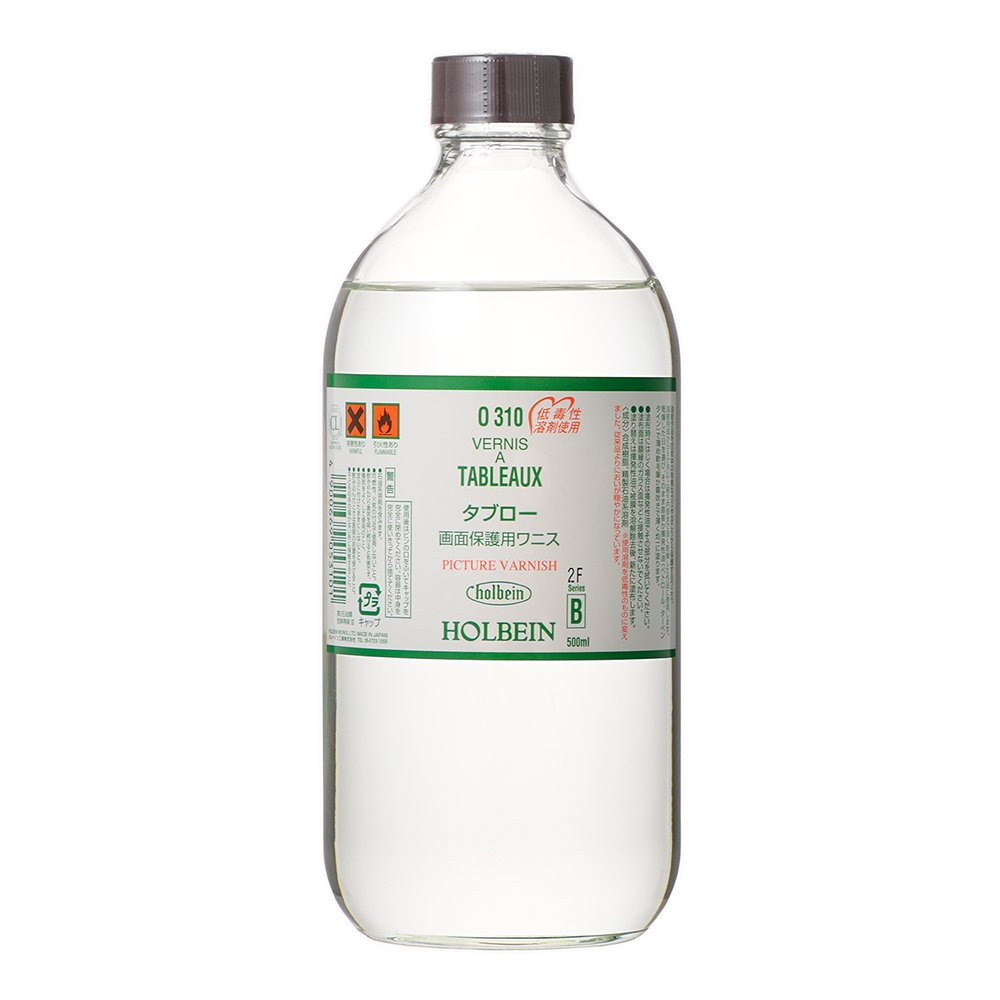 特殊合成樹脂をぺトロールで溶解したワニス。塗膜が強く、塗り替え時の再溶解性に優れている。通気性がないため、使用は作品の完全乾燥後(目安は完成から6〜12ヶ月後)に限り、雨天など湿度の高い日には塗布膜が白く濁ることがあるので避ける。後日、揮発性油で古い塗膜を除去し、塗り替えることができる。