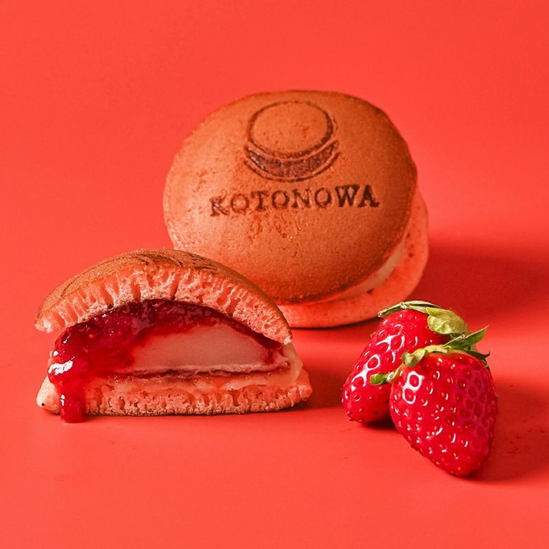 丁寧に焼き上げた生地に古都華いちごのジャム、ミルクベースの白あん、求肥を挟んだ奈良県ならではのどら焼き。