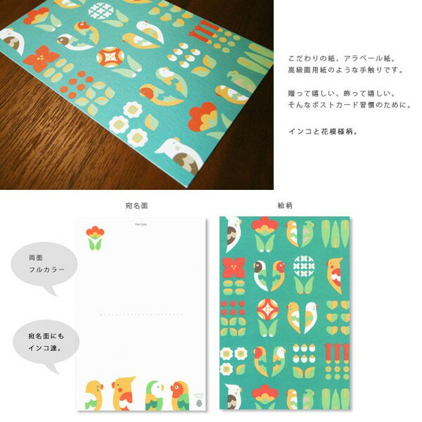 【KOTORITACHI】ポストカード ★インコと花模様 ◆ゆうパケット対応◆