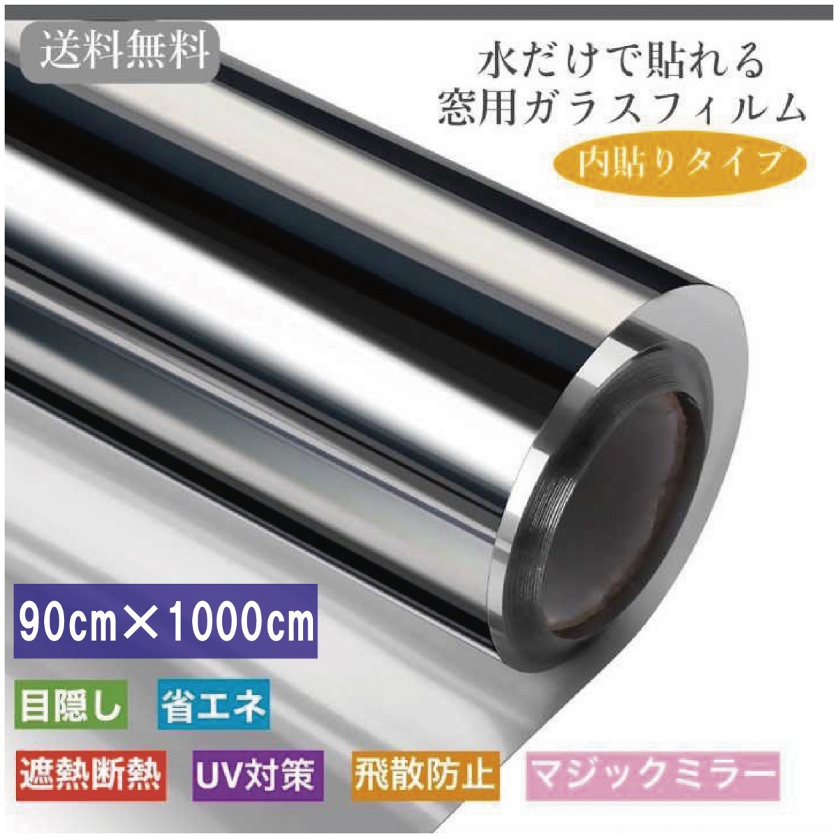 窓ガラスフィルム 台風対策 暴風対策 破片飛散防止 ガラス透明断熱フィルム めかくしシート マジックミラー 紫外線カット ブラックシルバー 90cm×1000