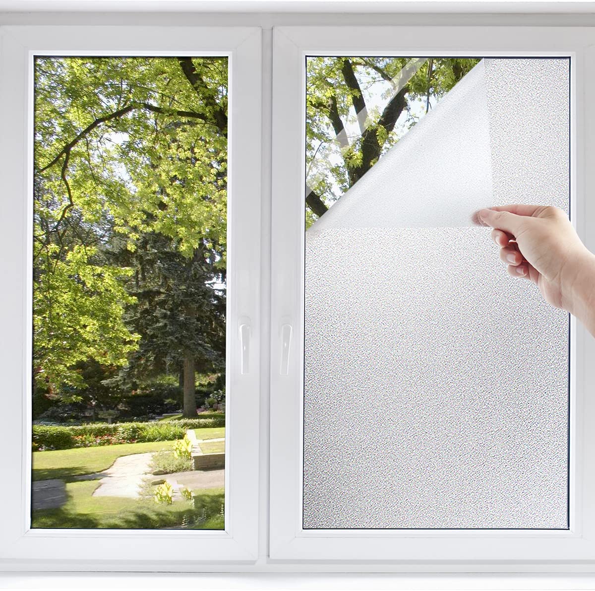 窓用フィルム 目隠しシート プライバシー保護 ガラス飛散防止シート 断熱フィルム UVカット 貼り直し可能 すりガラス調 ( 薄白 90cm*250cm)