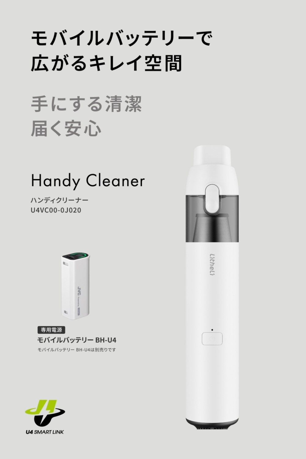 Litheli ハンディクリーナー U4VC00-0J020 | バッテリー別売 モバイルバッテリーが電源になる 軽量 HEPA フィルター ワンタッチ簡単ごみ捨て