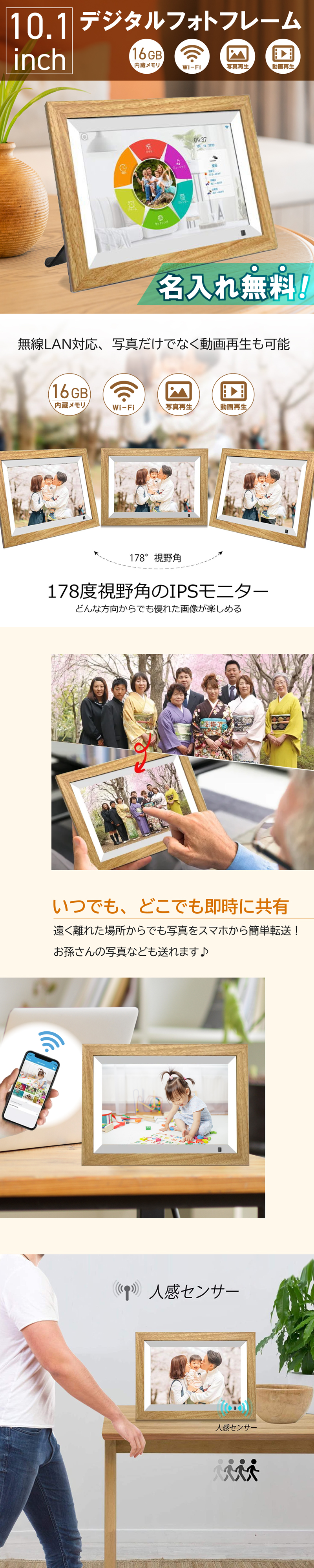 wifi デジタルフォトフレーム 10インチ 記念品 名入れ プレゼント 結婚祝い 卒業記念品 フォトフレーム
