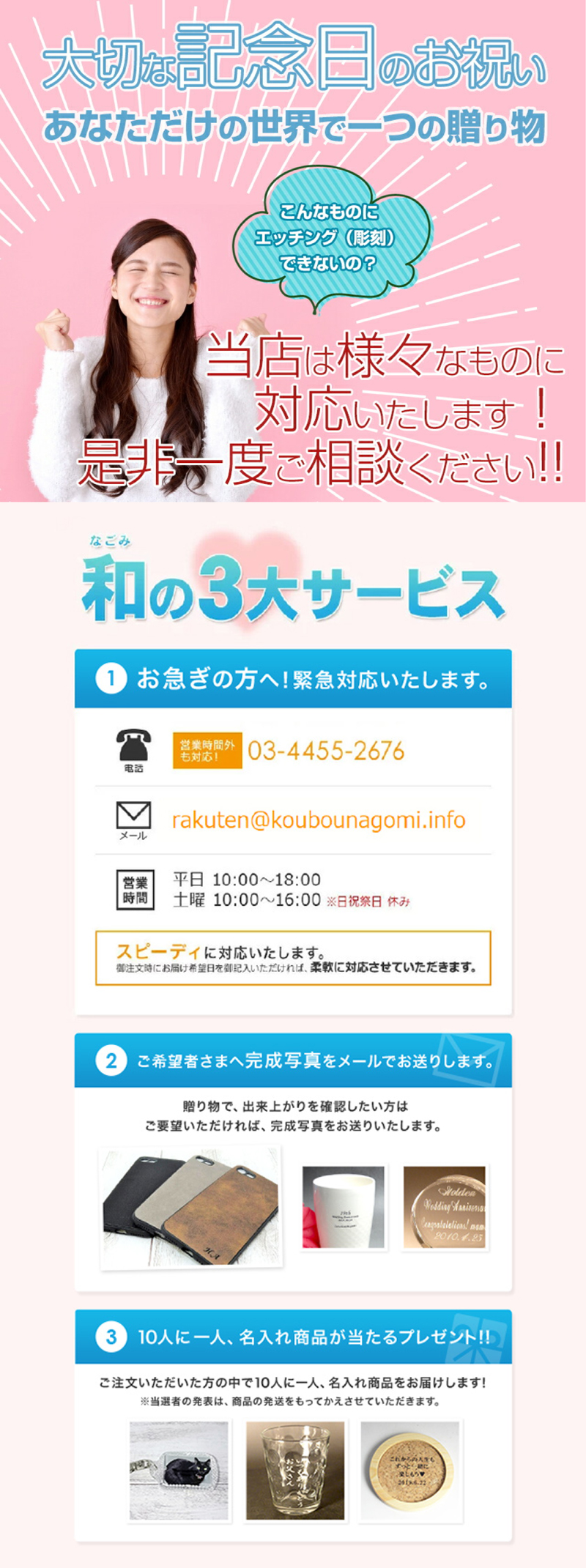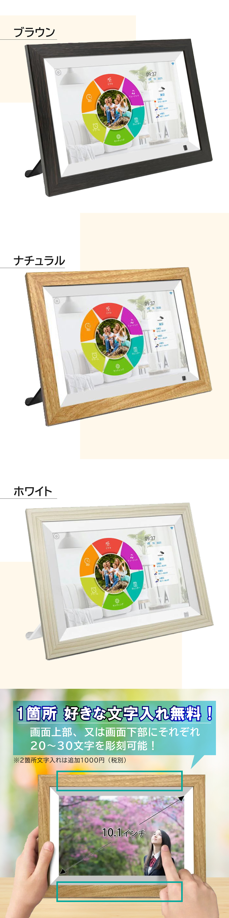画面上部、画面下部にそれぞれ20〜30文字好きなを彫刻可能!